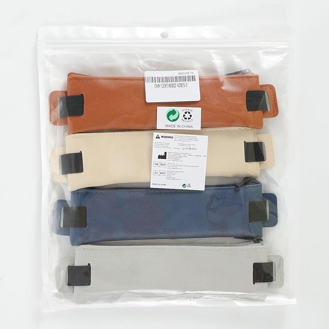 MoKo Elastic Pen Holder for Notebook, 4 Pieces PU Leather Pencil Case with Adjustable Band, Stationery School Supplies Zipper Bag for Planners, Journals, Book