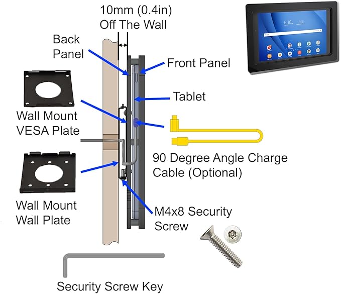 TABcare Security Anti-Theft Acrylic VESA Enclosure for Samsung Galaxy TAB A9+ 11 with Wall Mount Kit (Clear, TAB A9+ 11)