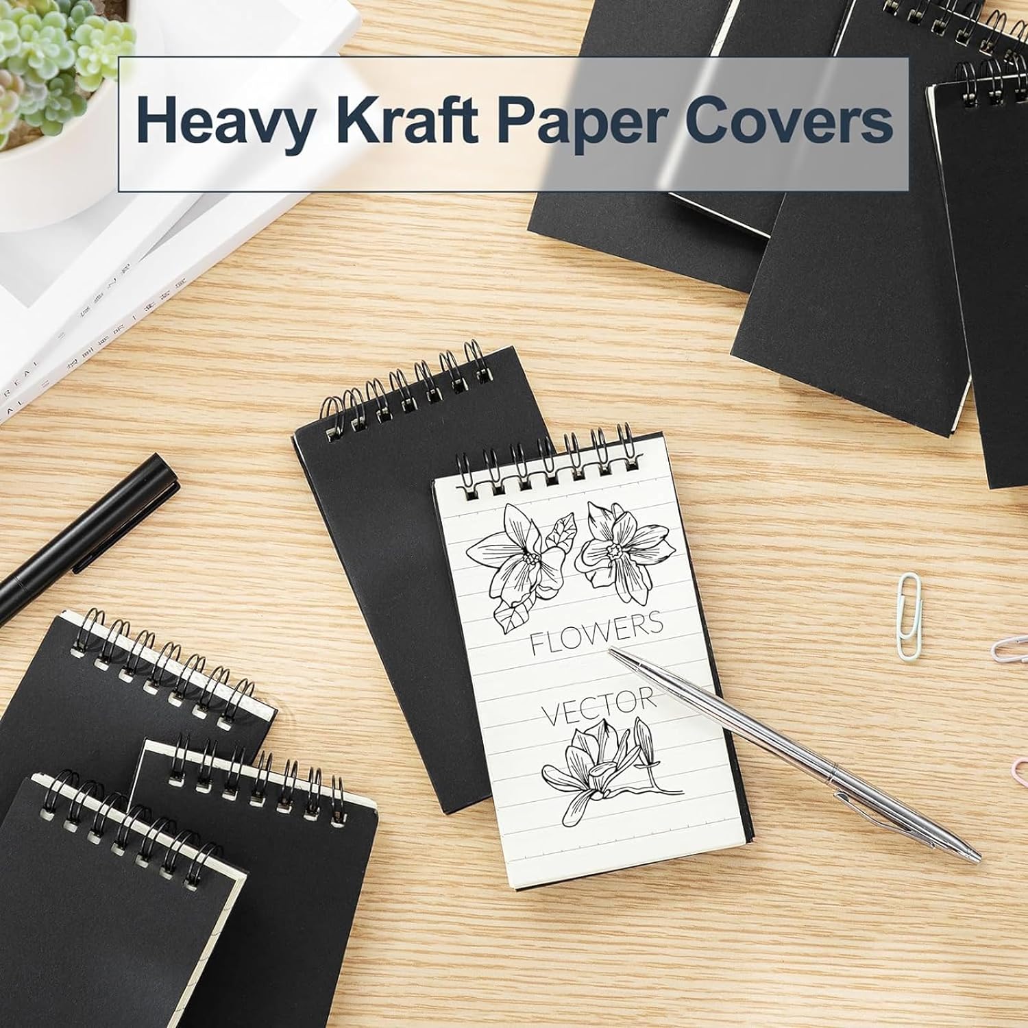 - Nice Workmanship: this mini spiral notebook is made of sturdy 350 g kraft paper cover, which could resist curling at bottom, and 80 grams of thickened paper inside, allowing you to use on both sides; No loose sheets or mishaps like with bargain notebook; Each piece of paper is carefully cut to give you a good mood while taking notes, jotting down ideas, recording important work items or travel thoughts