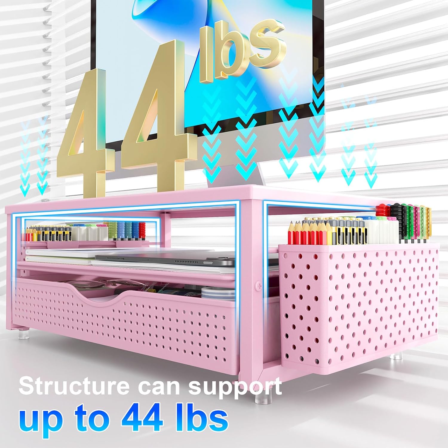gianotter Desk Organizers and Accessories, Monitor Stand with Drawer and 2 Pen Holder, Desktop Organizer Suitable for Offices and Dormitories (Pink)