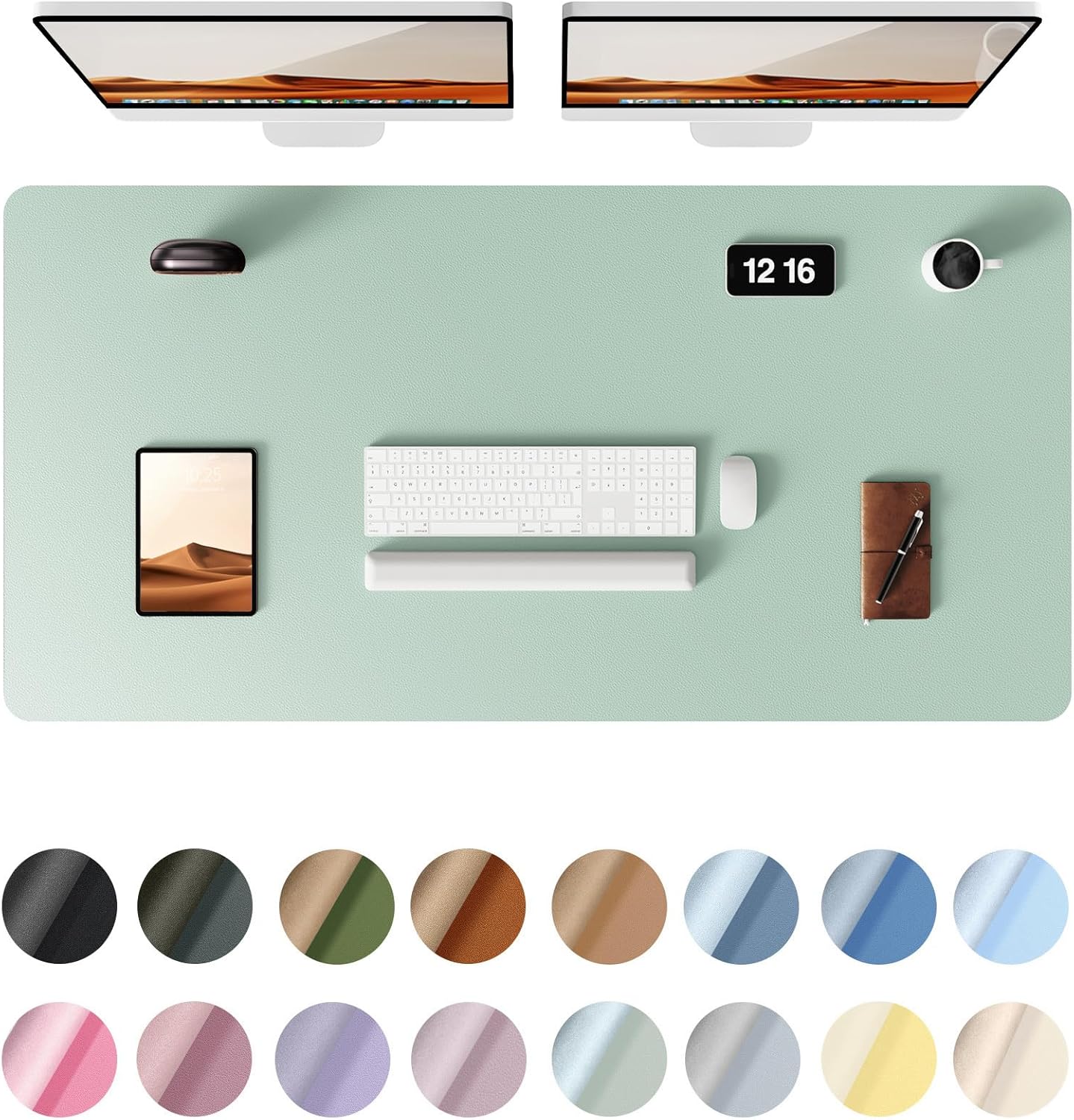 YSAGi Leather Desk Protector, Office Mat, Large Mouse Mat, Non-Slip PU Leather Blotter, Laptop Desk Pad, Waterproof Writing Pad for Office and Home (Pale Green, 47.2" x 23.6")