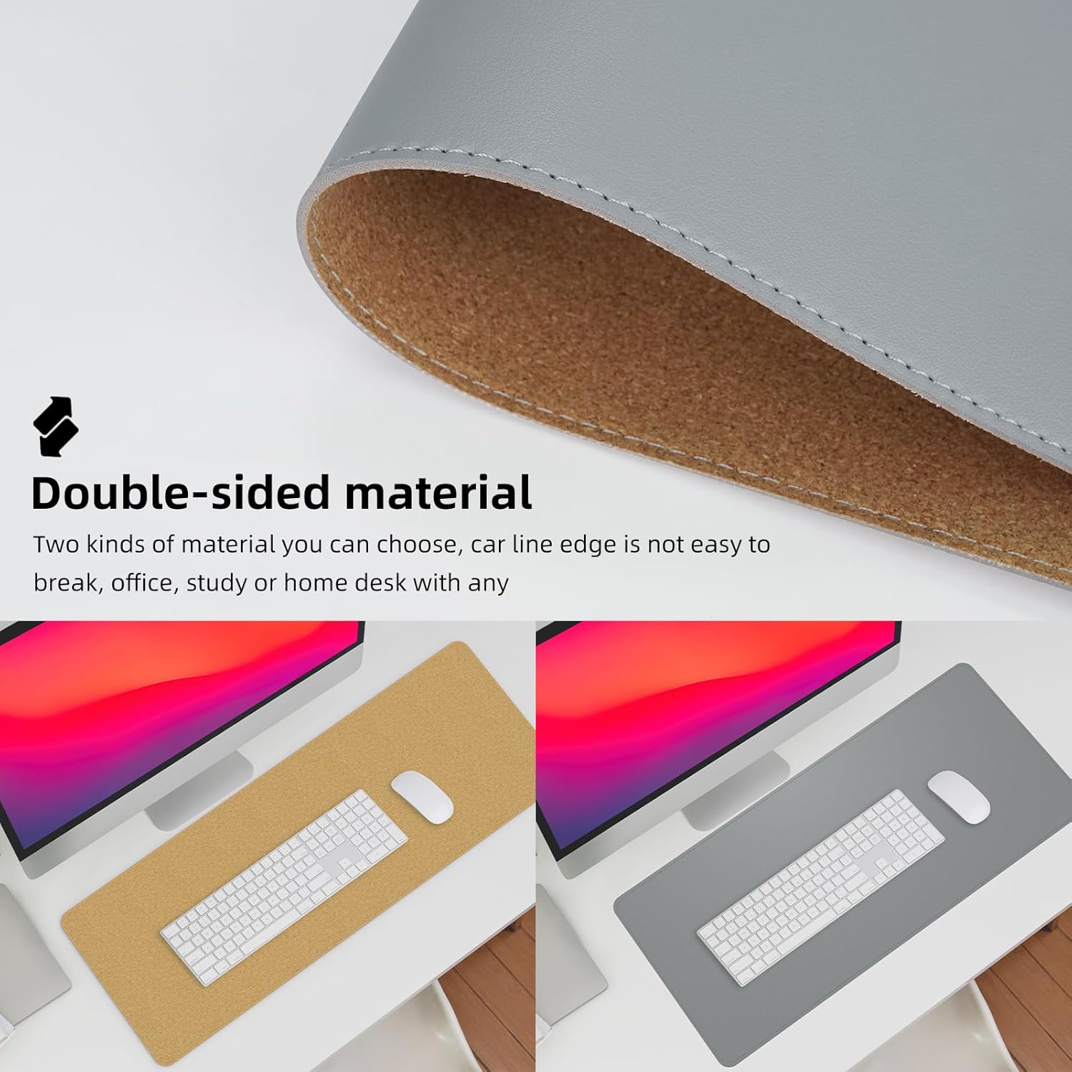 Leather Desk pad Protector,47" x 17" Large Desk mat with Natural Cork & PU Leather,Mouse pad,Non-Slip Office Desk Mat,Waterproof Desk Writing Pad for Office and Home (Light Gray)