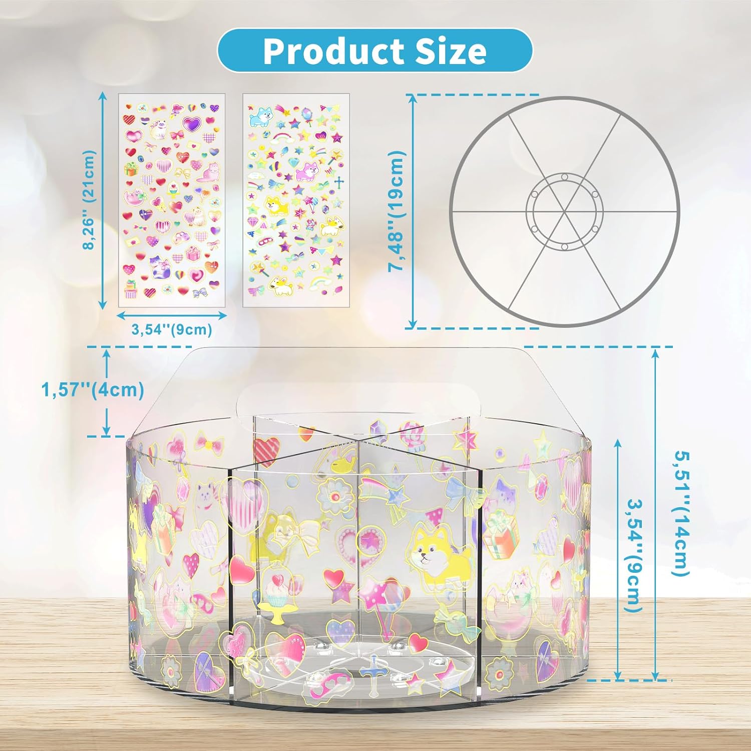 - Carousel Pencil Cup Holder for Desk Cute: Wawocs turntable desktop pencil holder cute with 2 adhesive waterproof aesthetic stickers to decorate for kids and adults. The stickers are made of PVC, size: 8,26x3,54'' (21x9cm), which is bright color, safe and non-toxic. Get the stickers and then use your imagination to decorate the spinning pen holder organizer.