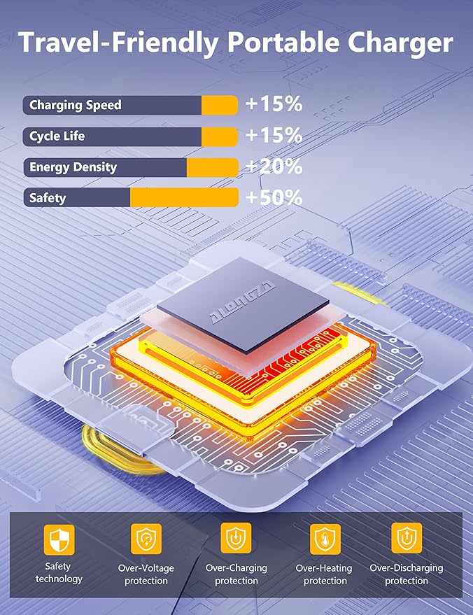 - Safety & Travel-Friendly Portable Charger: Built with a premium battery and a rigorously tested damage-resistant cable, the phone battery bank is designed for long-lasting durability. Its intelligent protection system prevents over-current, overheating, and overcharging. It's safe, reliable, and airline-compliant.