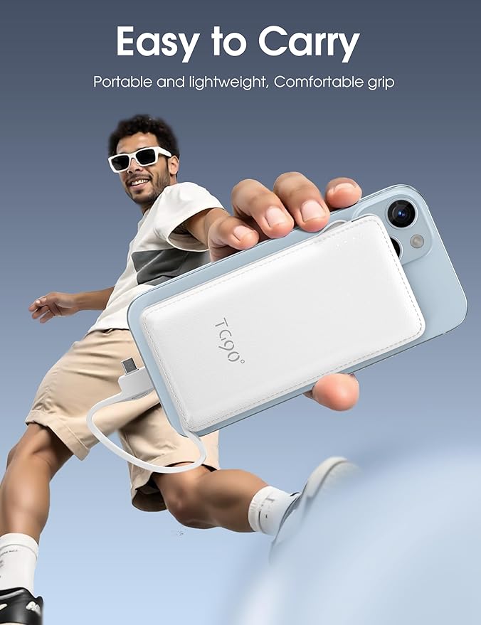 TG90° Portable Charger Power Bank with Built-in AC Wall Plug and Cables, 10000mAh USB C External Battery Charger Compatible with iPhone and Android Phones