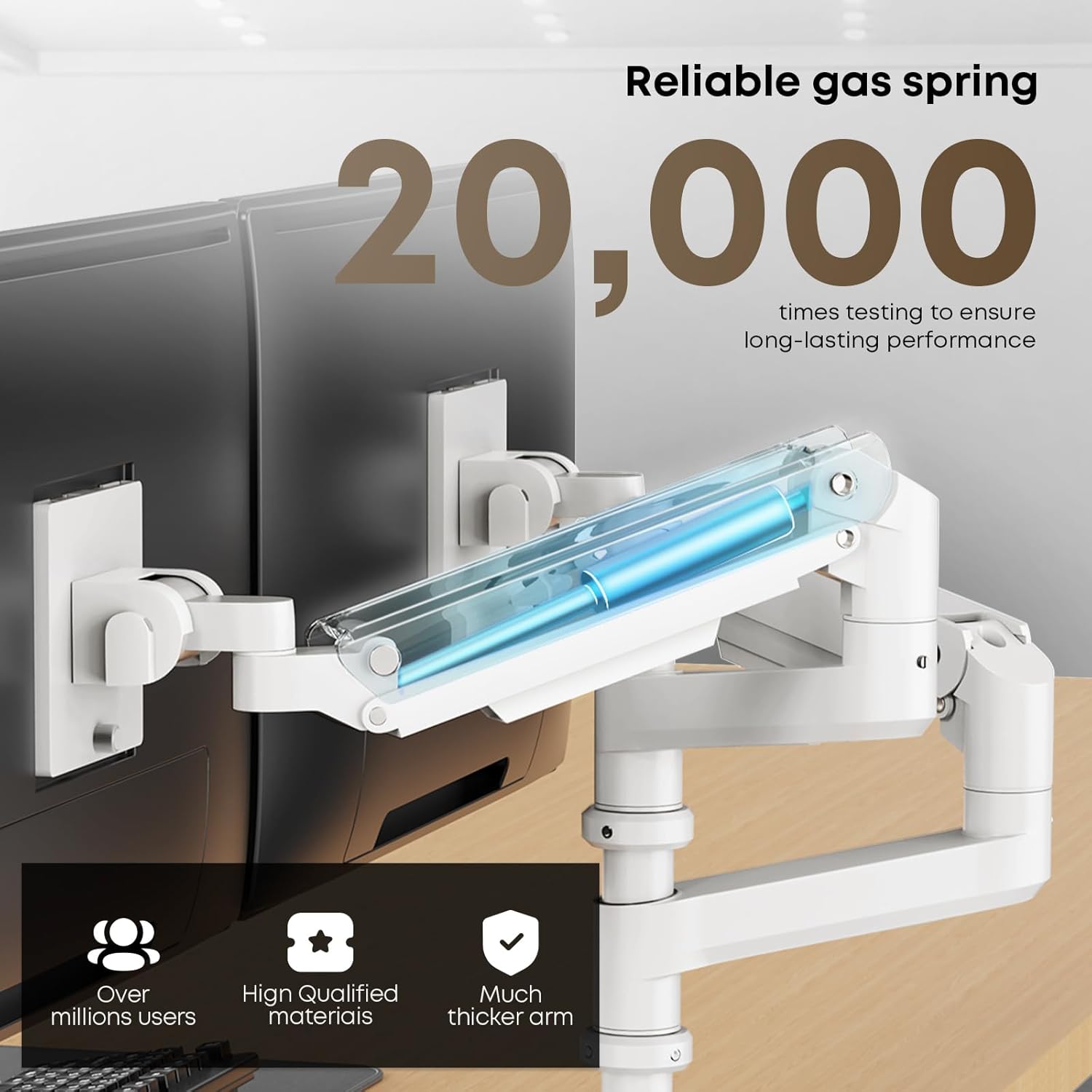 - Durable Build & Easy Installation: Made of preminum aluminum alloy and steel, the gas spring inside the arm has been tested for 20,000+ adjustments and meets safety standards. All tools and hardware are included for a quick 15-minute, tool-free setup