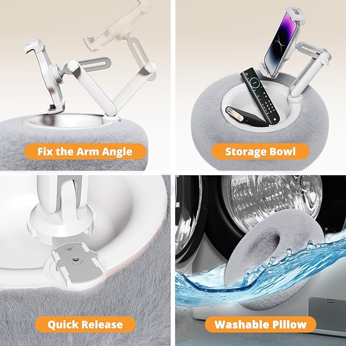 - 【Robust Adjustable Arm】Built stronger for stability! The dual-jointed arm includes metal core hinges and anti-slip knobs to securely hold heavier devices. Tighten effortlessly with the included Allen wrench for maximum strength—no wobble, even during extended use.