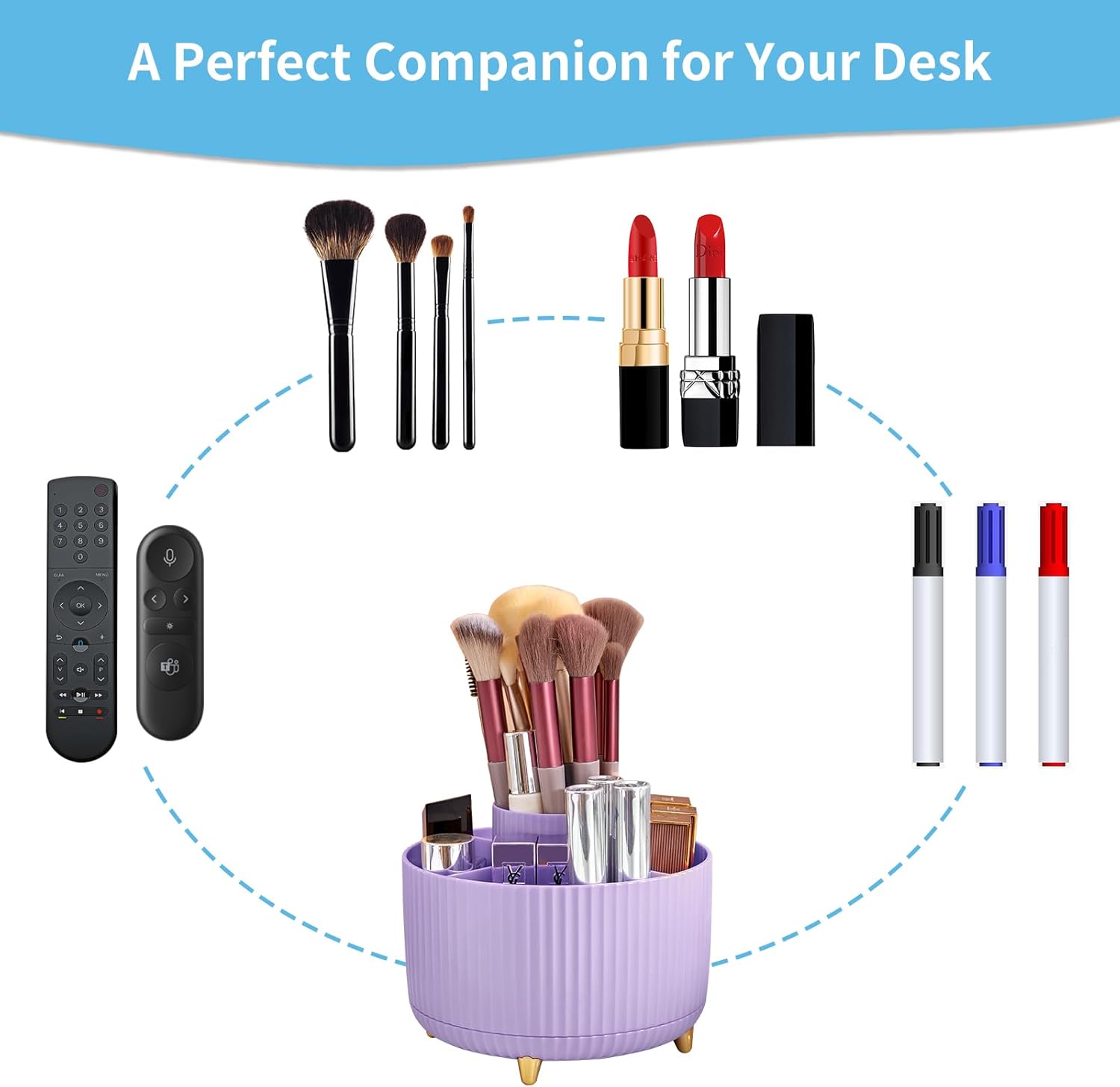 Marbrasse Desk Organizer, 360-Degree Rotating Pen Holder, Desk Organizers and Accessories with 5 Compartments Pencil Holder, Art Supply Storage Box Caddy for Office, Home(Purple)