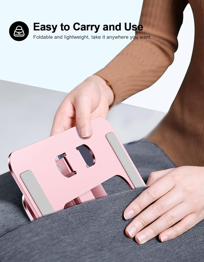 Foldable Laptop Stand, Height Adjustable Ergonomic Computer Stand for Desk, Aluminum Portable Laptop Riser Holder Mount Compatible with MacBook Pro Air, HP, Dell 10-16" (Pink)