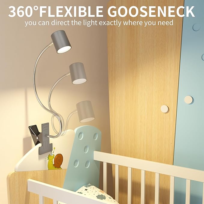 - 360° Adjustable Gooseneck Lamp - Reading lamps for bed comes with a flexible gooseneck tube made of quality aluminum alloy. The neck is tough and can be flexibly bent 360 degrees. It can be easily adjusted to the most comfortable Angle for the best reading effect