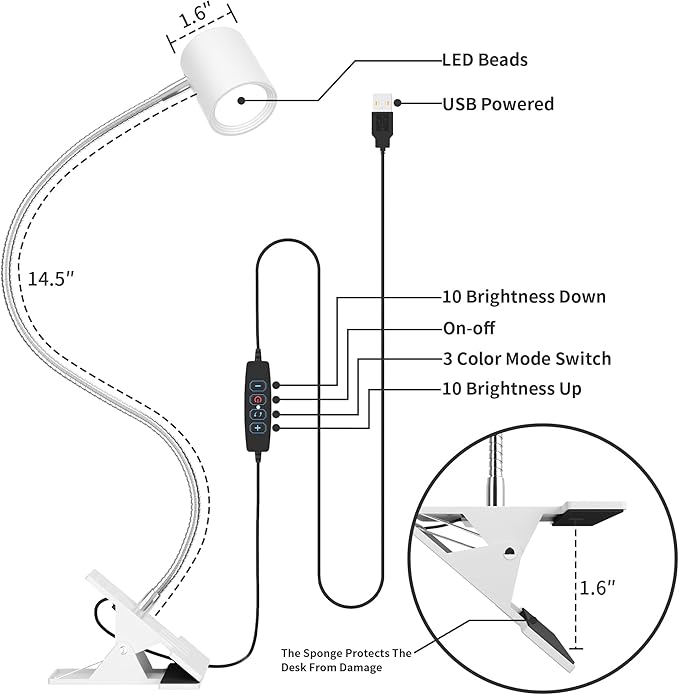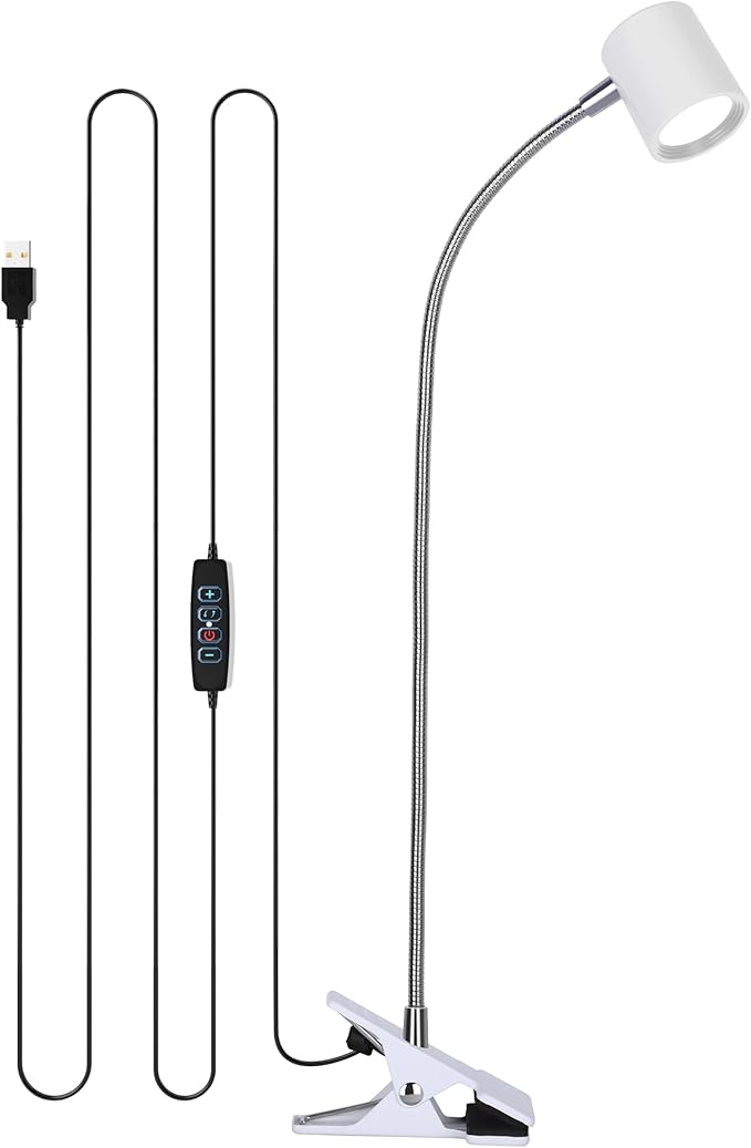 - Better Illumination Effects -The clamp desk light provides high CRI (90+) LED beads, brings you a clear and bright lighting effect while also restoring the color of an object.Bed reading light comes with a 4.9 ft USB cable that can be easily plugged into any available USB port to power the lamp (Adapter not include)