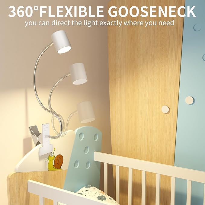 - 360° Adjustable Gooseneck Lamp - Reading lamps for bed comes with a flexible gooseneck tube made of quality aluminum alloy. The neck is tough and can be flexibly bent 360 degrees. It can be easily adjusted to the most comfortable Angle for the best reading effect