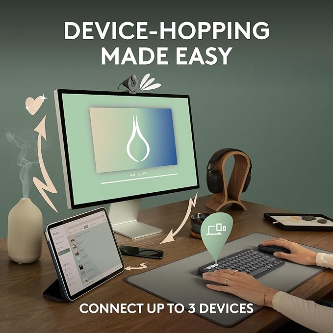 - Easily Hop Across 3 Devices: Use Bluetooth to connect up to 3 wireless devices across OSs (Windows, macOS, iPadOS, ChromeOS), and switch between them with one click of the Easy-Switch buttons