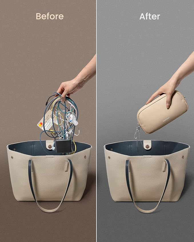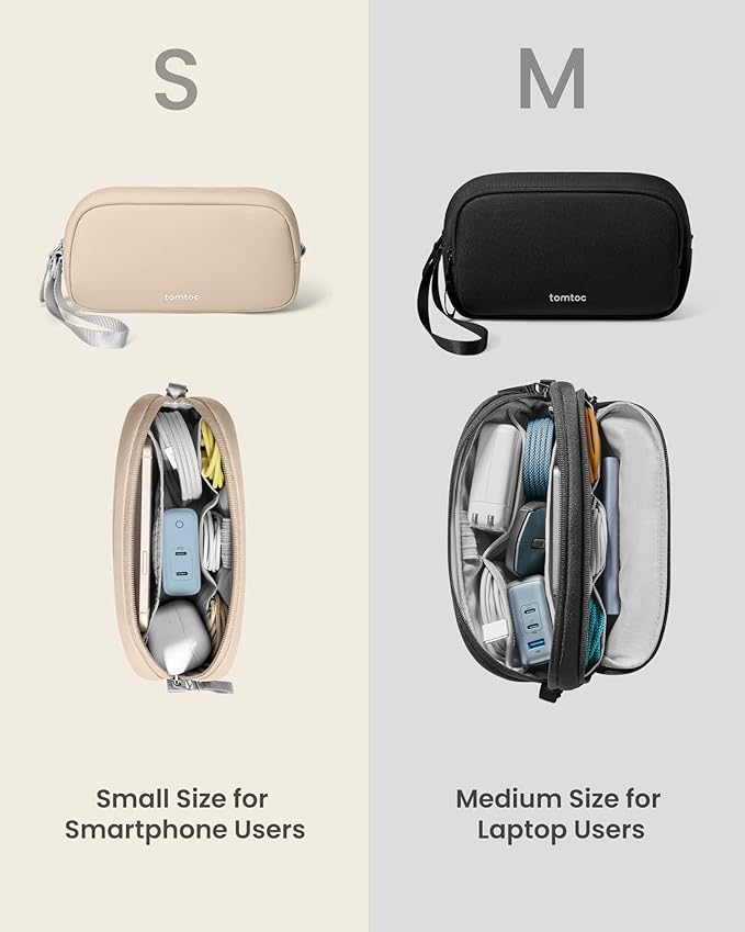 - Convenient & Portable: Designed for portability, the tomtoc tech and travel pouch keep your essentials organized and within reach, fitting seamlessly into a backpack, tote, or handbag, and can stand upright on a desk to grab items easily