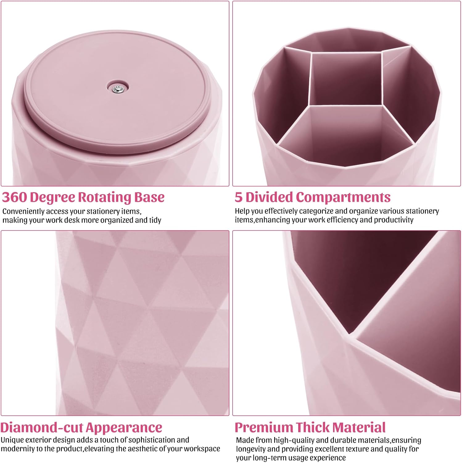 - Premium Material for Durability:Crafted from high-quality PP plastic,pink desk organizer is durable and resistant to damage.Whether you're using rotating organizer in the office or at home,pencil organizer for desk can withstand long hours of use without compromising pen cup holder for desk appearance or functionality.