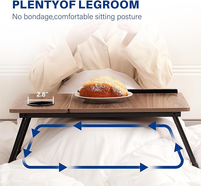 - Split Desktop Design: The bed desk compared to other models of desktop can be tilted bed table, more convenient to use, our desktop using part of the tilt design, the left side can be tilted desktop size (14.76*12.7in), compatible with most laptop computers, the right side of the desktop size (7.12*12.7in), tilted at the same time you can use the mouse, placing cups of water, food and so on, and is not easy to slide off