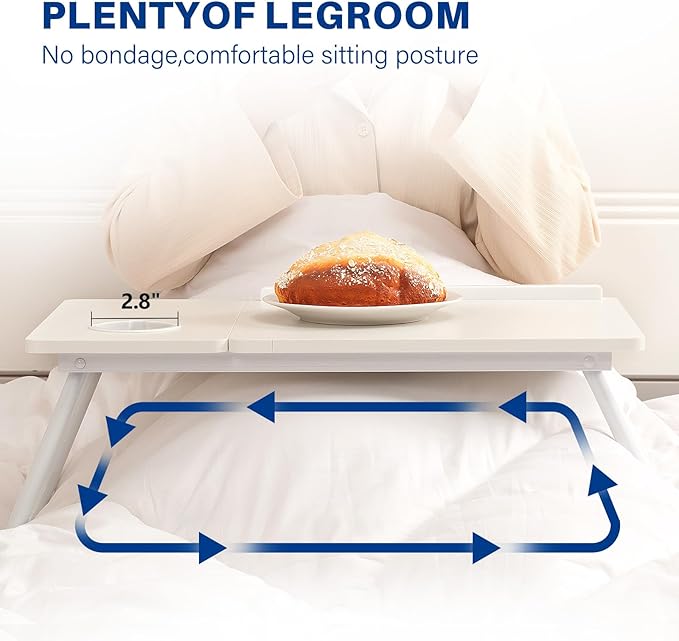 Laptop Desk for Bed Couch, Adjustable Foldable Bed Table with Cup Holder, Breakfast Serving Tray, Portable Laptop Lap Desk Stand for Working Reading Writing Eating Gaming in Bed Sofa Floor(White)