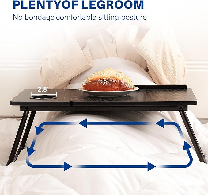Laptop Desk for Bed Couch, Adjustable Foldable Bed Table with Cup Holder, Breakfast Serving Tray, Portable Laptop Lap Desk Stand for Working Reading Writing Eating Gaming in Bed Sofa Floor(Black)