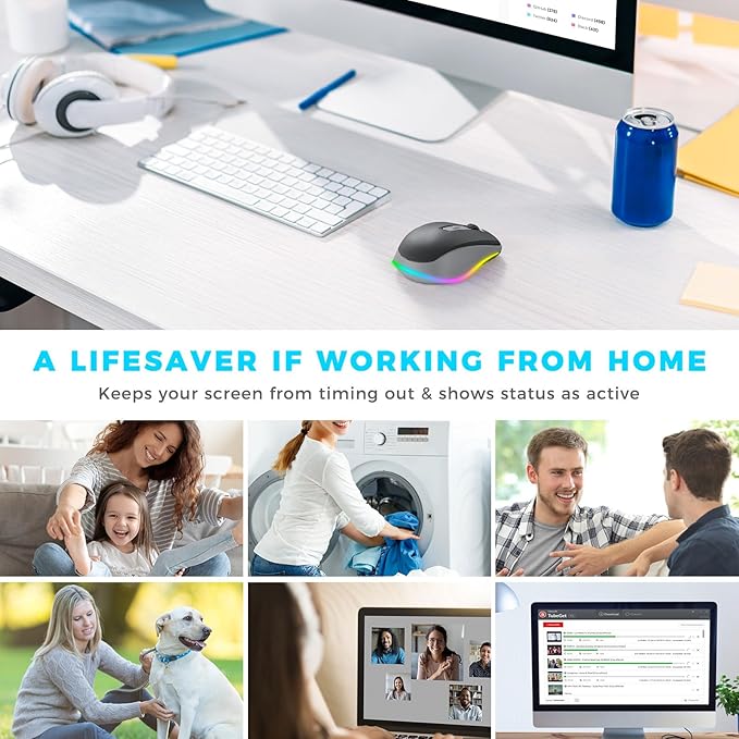 - Light Up Mouse & Mouse wiggler 2 In 1 -- If you working from home and was tired of being a slave to your computer, this mouse and jiggler in 1 could be your choice, just press and hold the DPI button 3-5seconds to set it on jiggler mode to keep your computer from locking when you have to step away