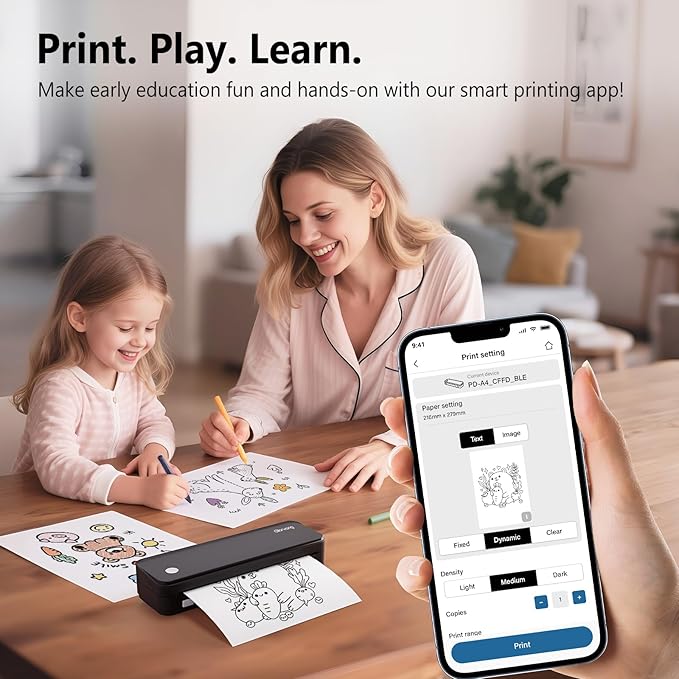 - High-Quality Printing & Long-lasting Battery - This resolution of this printer is 203DPI. Equipped with 2 built-in 2600mAh batteries, it offers up to 3 hours of continuous printing and 360 sheets on a single charge. (Only Print in Black, not print in color!!)