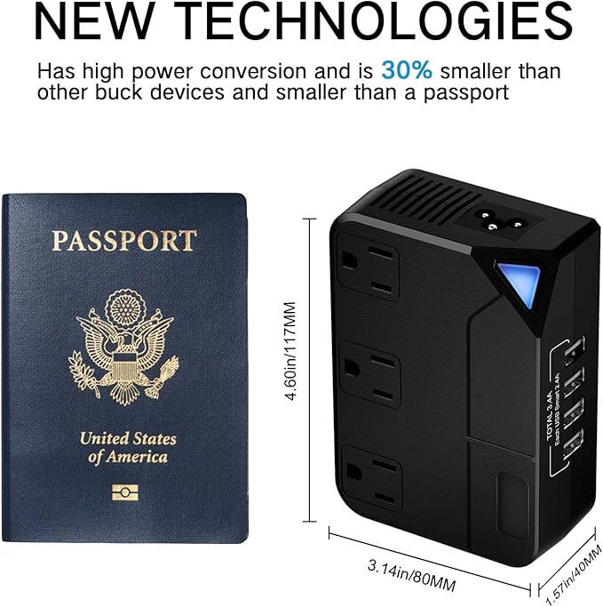 - PROTECT YOUR DEVICES -- The converter automatically shuts off in case of over-voltage, over-temperature, over-current, over-heat or short-circuit protection, no need to worry about damaging your devices.