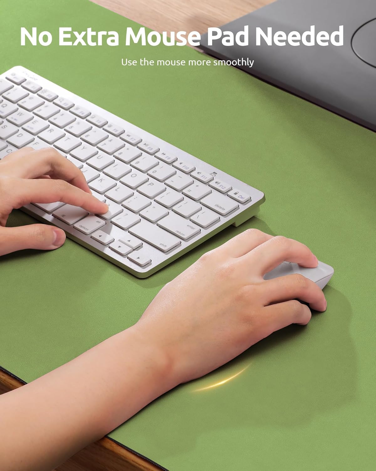 YSAGi Leather Desk Protector, Office Mat, Large Mouse Mat, Non-Slip PU Leather Blotter, Laptop Pad, Waterproof Writing Pad for Office and Home (Leaf Green, 23.6" x 13.8")