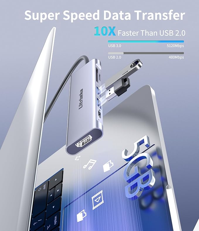 - 【2×USB-A Efficient Data Transfer Ports】Up to 5Gbps data transmission speed with the USB3.0 ports, transferring your big files and pictures in seconds.Expand your work efficiency either from home or the office.works on multiple devices/ports simultaneously
