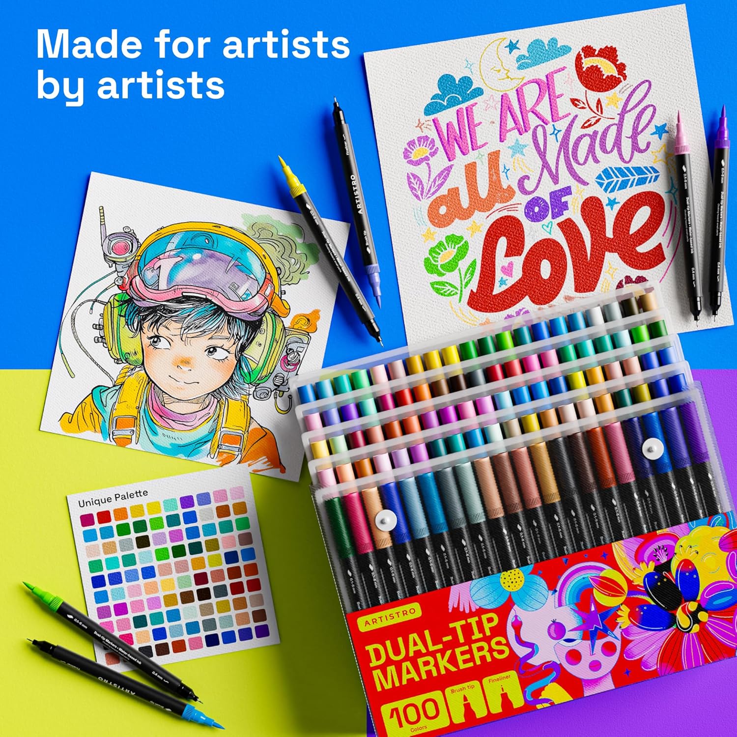ARTISTRO 100 Brush Marker Pens Coloring Markers for Adults Brush Tip & 0.4mm Fineliner Pens Coloring Markers No Bleeding