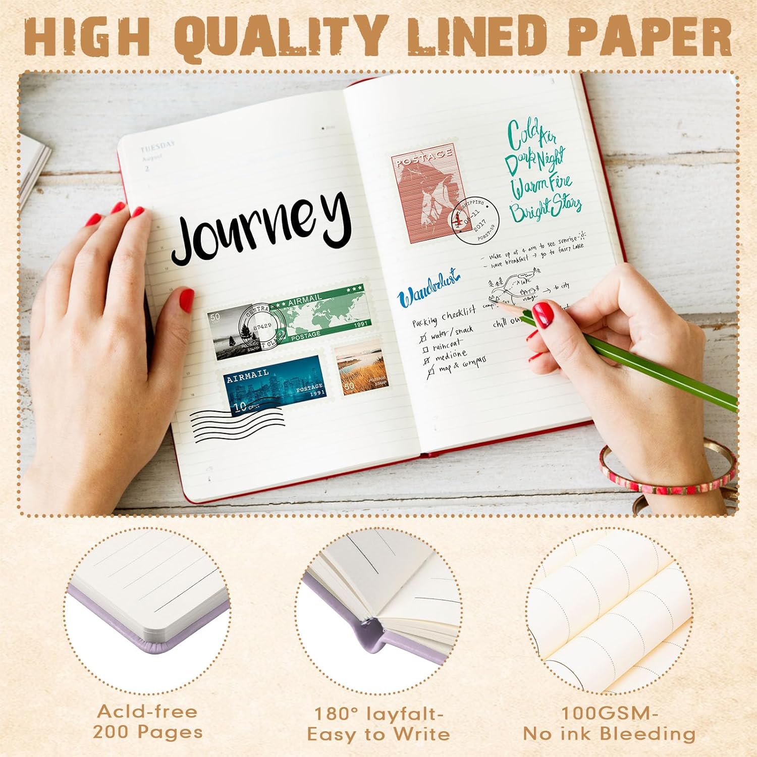 - 180 Degrees Lay Flat: our small notebook can be laid flat at 180 degrees after opening, convenient for both left and right hand writing, improving efficiency, which is also convenient for you to read; When you're done, you can close it tightly with an elastic band, so the paper can stay flat and will not curl