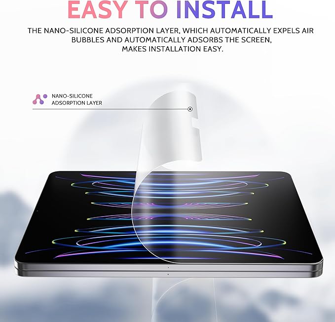 - 【Easy to Install】The Peslv iPad Pro 12.9 inch screen protector uses a nano-silica gel adsorption layer, which can automatically discharge air bubbles and automatically absorb the screen, which will make our installation very simple and convenient, and there will be no more troubles with air bubbles. The iPad like-paper film has high-quality oleophobic properties and can effectively prevent fingerprints.