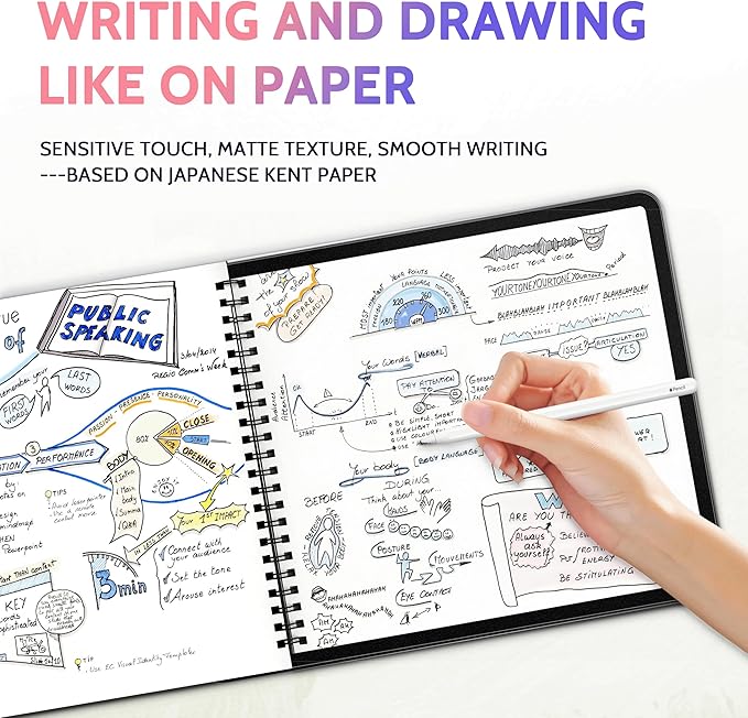 - 【Feel Like On Paper】Peslv iPad pro 12.9inch screen protector, using the Kent paper film technology imported from Japan, improves the feel like to paper 99%. Using it with the ipad pencil, we can get the same smooth, sensitive iPad screen creation experience as drawing on paper!
