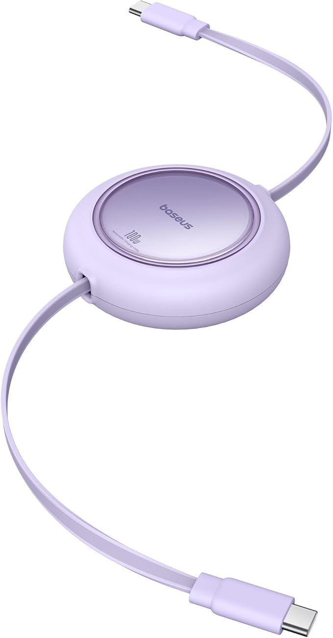 Baseus USB C to USB C Cable, 100W 6.6ft Retractable USB C Fast Charging Cable, 7-Stage Length Preset Retractable Charger Cord for iPhone 16 15 Pro Plus Pro Max, MacBook, iPad Pro, Samsung S24/S23+
