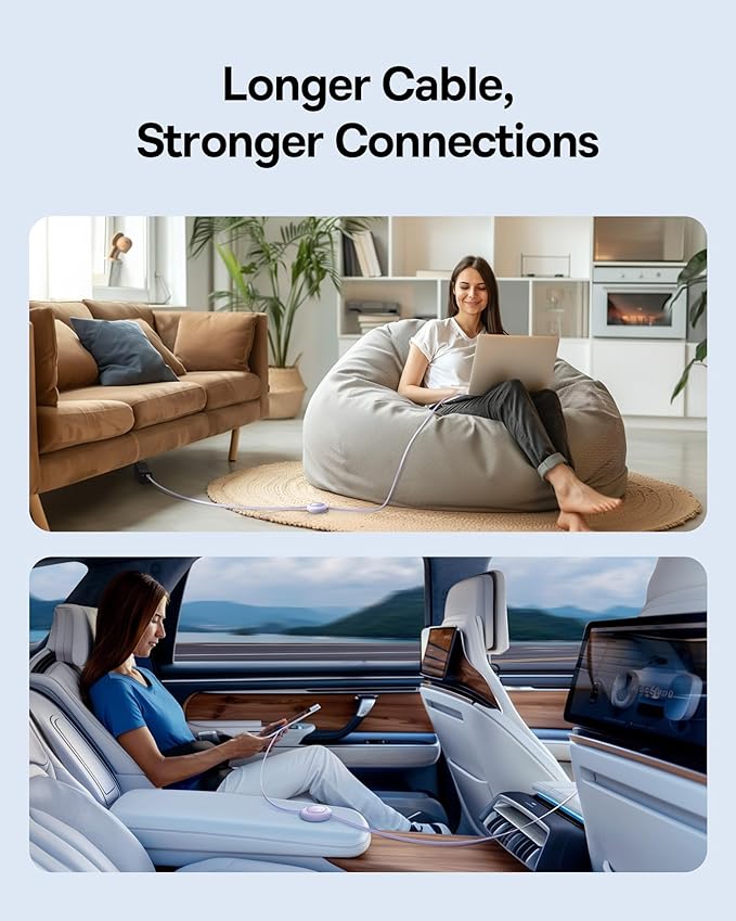 - Thin Out Your Bag: Weighing in at Just 116g, This Retractable USB C to USB C Cable Makes Your Charging Solution More Compact and Lightweight with Its Slim USB-C Charger Design.