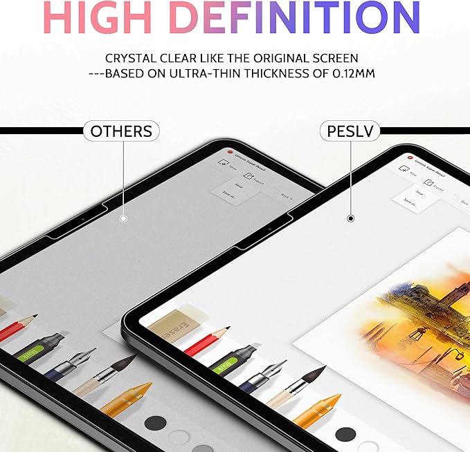 - 【Feel Like On Paper】Peslv iPad Air 5th generation screen protector, using the Kent paper film technology imported from Japan, improves the feel like to paper 99%. Using it with the ipad pencil, we can get the same smooth, sensitive iPad screen creation experience as drawing on paper!