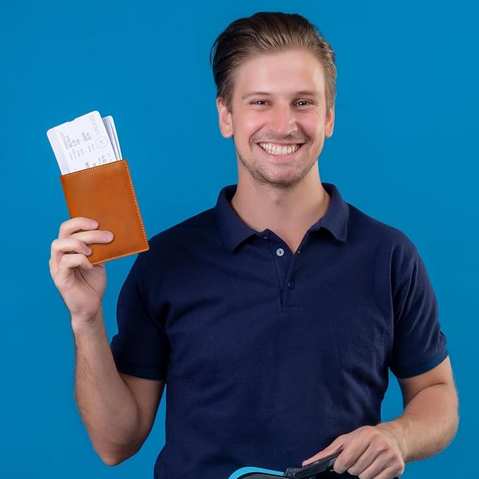 - Optimal Size and Elegant Design: Simplify your travel adventures with our Leather Passport Cover, perfectly sized at 8.27" by 5.52". It provides an ideal fit for standard passports and offers a compact and convenient design that easily slips into your travel bag or pocket. Its sleek and sophisticated design adds a touch of elegance, ensuring you stand out with sophistication and grace during your journeys.