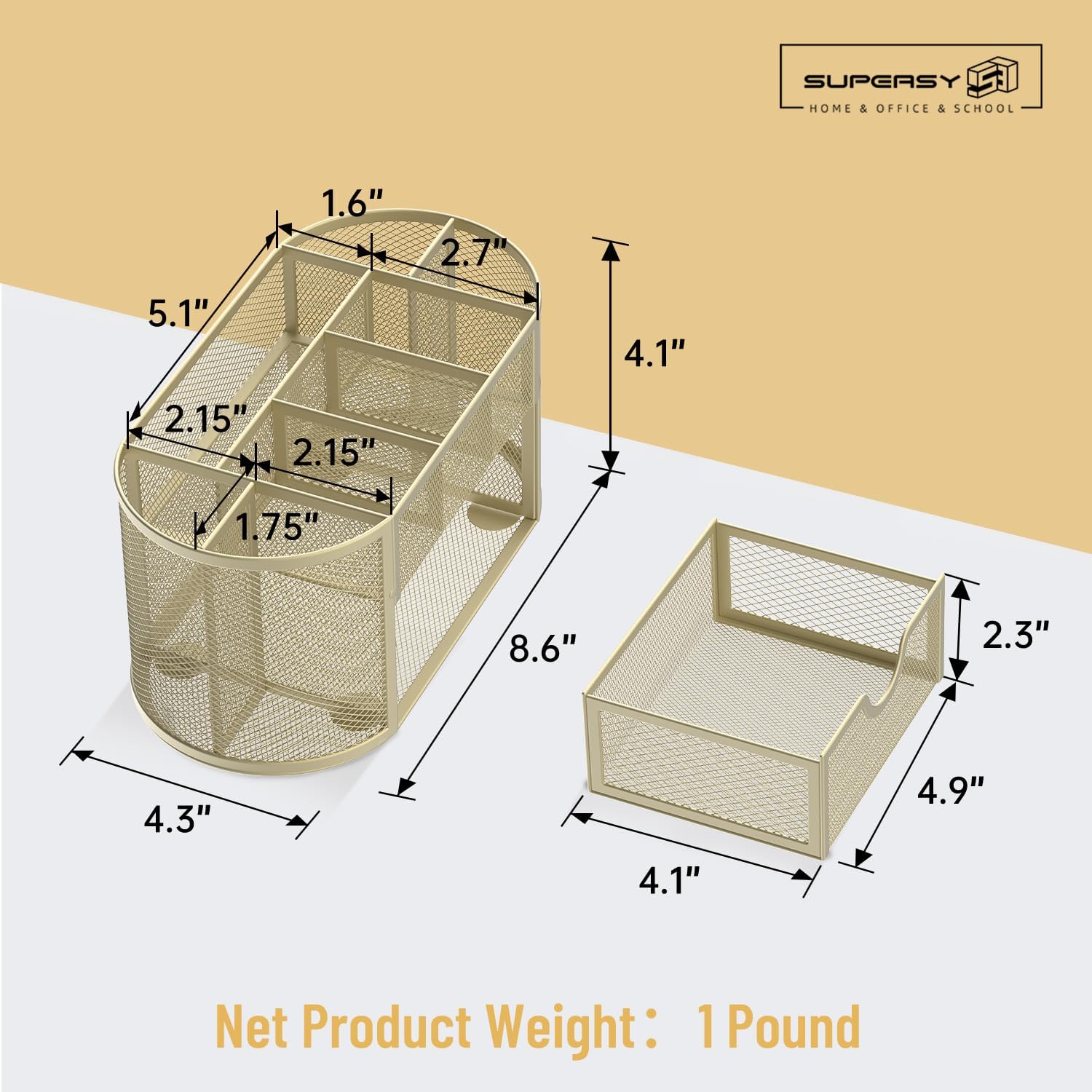 - [ 𝐏𝐫𝐨𝐝𝐮𝐜𝐭 𝐒𝐢𝐳𝐞 ] Mesh pen holder size 8.6 L x 4.3 W x 4.1H inch,small drawer measures 4.9 L x 4.1 W x 2.3H.