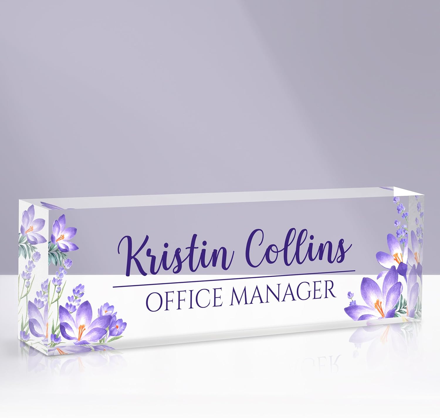 Custom Name Plate for Desk, Acrylic Office Decor For Women Men, Personalized Office Desk Accessories, Teacher Employee Appreciation Gifts For Social Worker Boss Coworkers (Purple Flower-1)