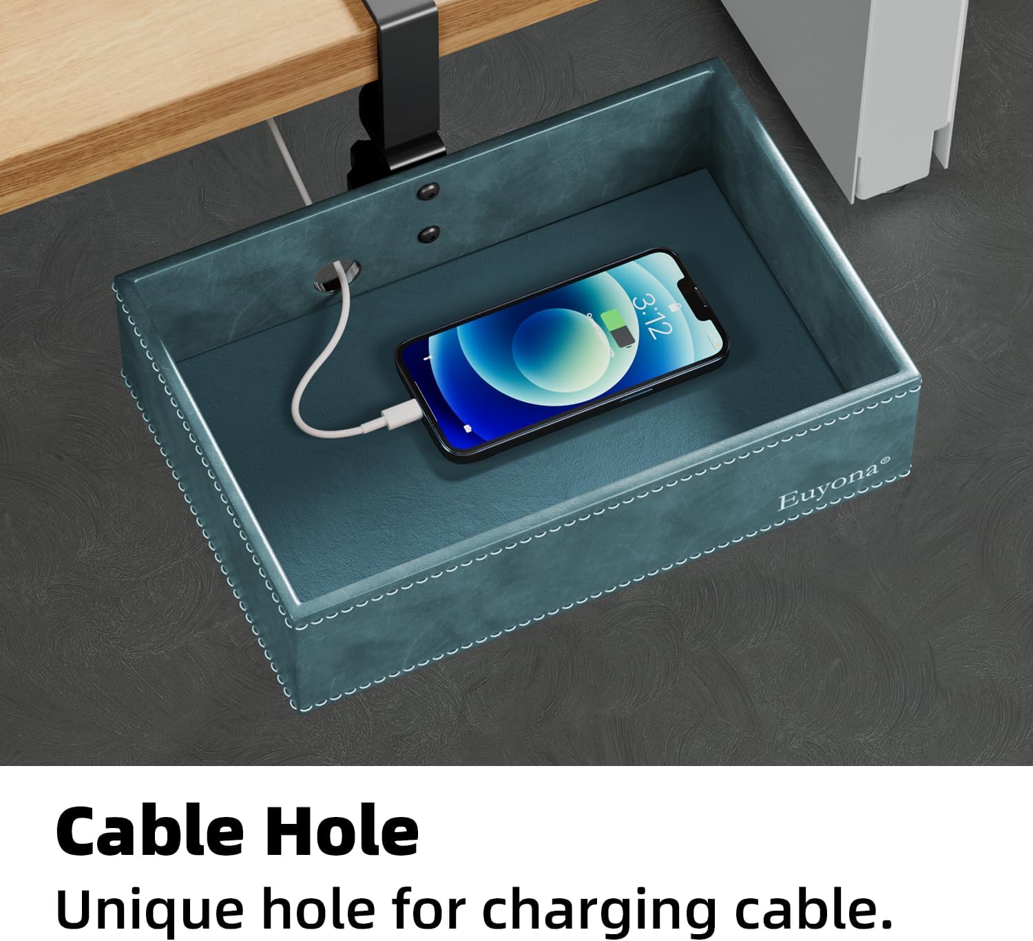 Mesh Hidden Desk Organizer with Swivel Pencil Drawer - Heavy-Duty C-Clamp Mount for Office Supplies, Art Tools & Home Storage, Easy Install Desktop Accessories (Sky Blue)
