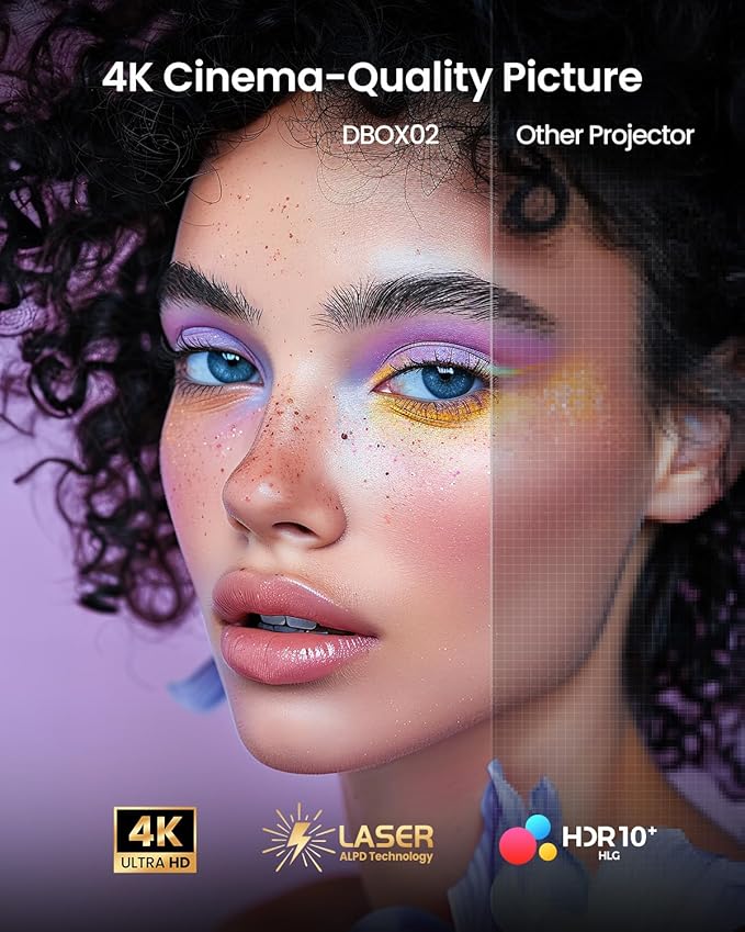 - Immersive 3D Entertainment: Bring movies to life with Blu-ray 3D visuals on the DBOX02 laser projector 4K. Enjoy ultra-bright laser projection, rich colors, and seamless 3D playback for a truly cinematic experience that transports you into action with stunning depth and realism.