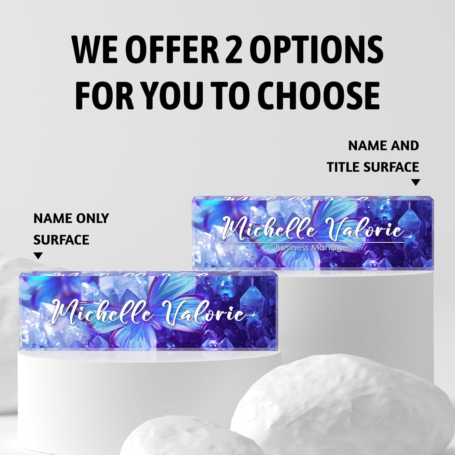 Personalized Name Plate for Desks, Custom Desk Name Plates, Acrylic Name Plate Office Desk Accessories, Personalized Office Gifts for Coworkers Teachers, Employee Appreciation Gifts (Crystal Butterfly)