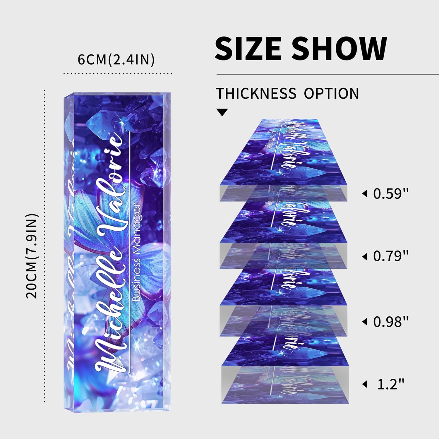 - 【Perfect Office Decor】Desk name plate personalized may be an indispensable item around you. It can be used as decoration for various occasions, such as offices, study rooms, conference rooms, classrooms. It also comes in 4 different sizes, suitable for different office scenarios, Clear 3D effects showcase your favorite fully designs and names, add an extra touch of elegance to your office.