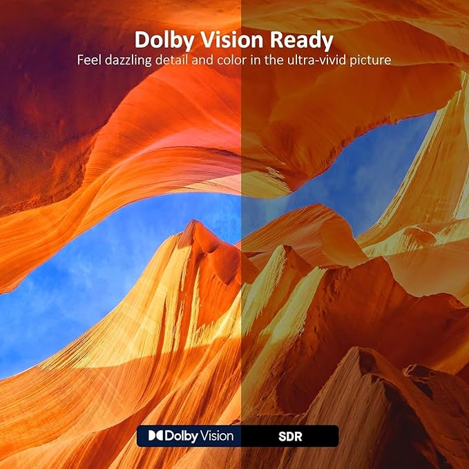 - 【Dolby Vision】The Aurora Pro is the only UST projector on the market that features Dolby Vision (DV), HDR10+, a native contrast ratio of >3000:1, and dynamic laser dimming. These features elevate the DV rendering to the next level with our improved tone-mapping algorithm.