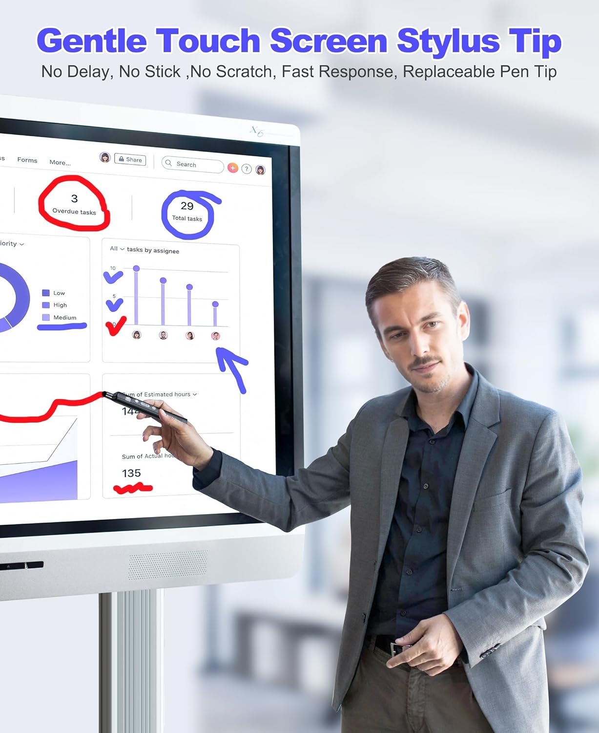 - 【TOUCH SCREEN STYLUS PEN】Designed with high sensitivity flocking tip. The wireless presenter crafted from gently, anti-slip ABS material for smooth interaction. Does better in anti-scratch protection and responsive interaction with the screen. Relax your fingers and get flexible clicking and smooth writing. An extra replaceable pen tip is included for your convenience