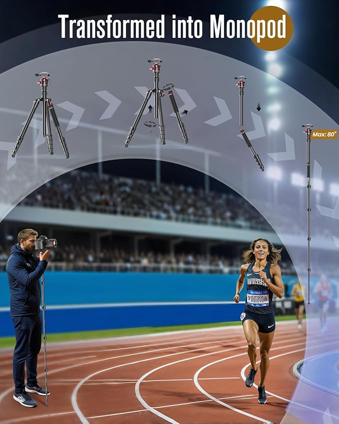 - γπ€π¨πππ ππππ¨π¦π§π ππ‘π§π¦, πππ£π§π¨π₯π π§ππ π π’π ππ‘π§γEach leg of this heavy-duty tripod features 4 extendable sections and 3 quick-release locks, allowing you to swiftly adjust the height from 24.6 to 80 inches in seconds. The tripod's leg angles are adjustable to meet your photography needs, and its maximum height eliminates the need to bend over while framing your shot.