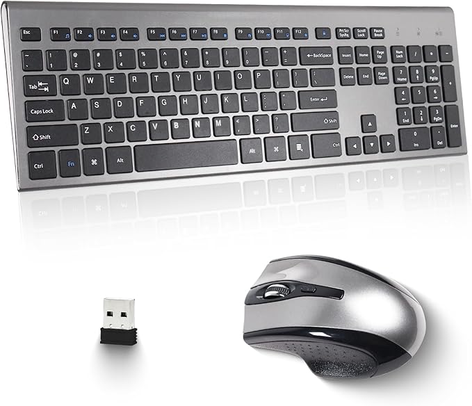 Wireless Keyboard and Mouse Combo 17inch Full Size 2.4G USB Ergonomic Slim Wireless Keyboard for PC Laptop Tablet Desktop Computer,Windows Silver Gray (Black Gray)