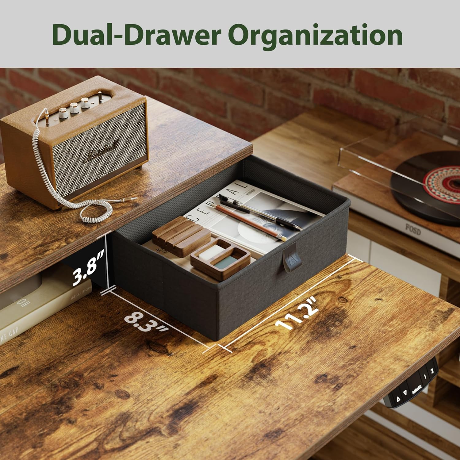Agilestic Electric Standing Desk with 2 Drawers and Keyboard Tray, 48 x 23 Inches Ergonomic Adjustable Height Desk with Storage, Sit Stand Computer Workstation, Rustic Brown
