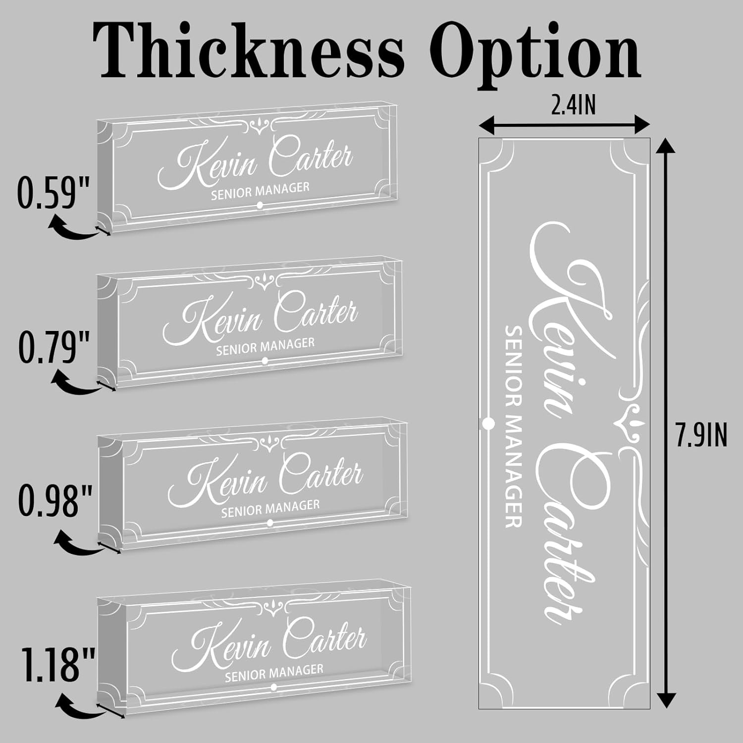 - 【Personalized Appreciation Gifts】Whether it's a holiday, birthday, or work anniversary, there's no better way to show your appreciation than by DIY-ing a unique name plate for your coworkers. And what better option than our premium acrylic glass block name plate? It's guaranteed to leave a lasting impression and let your colleagues know just how much you value them.