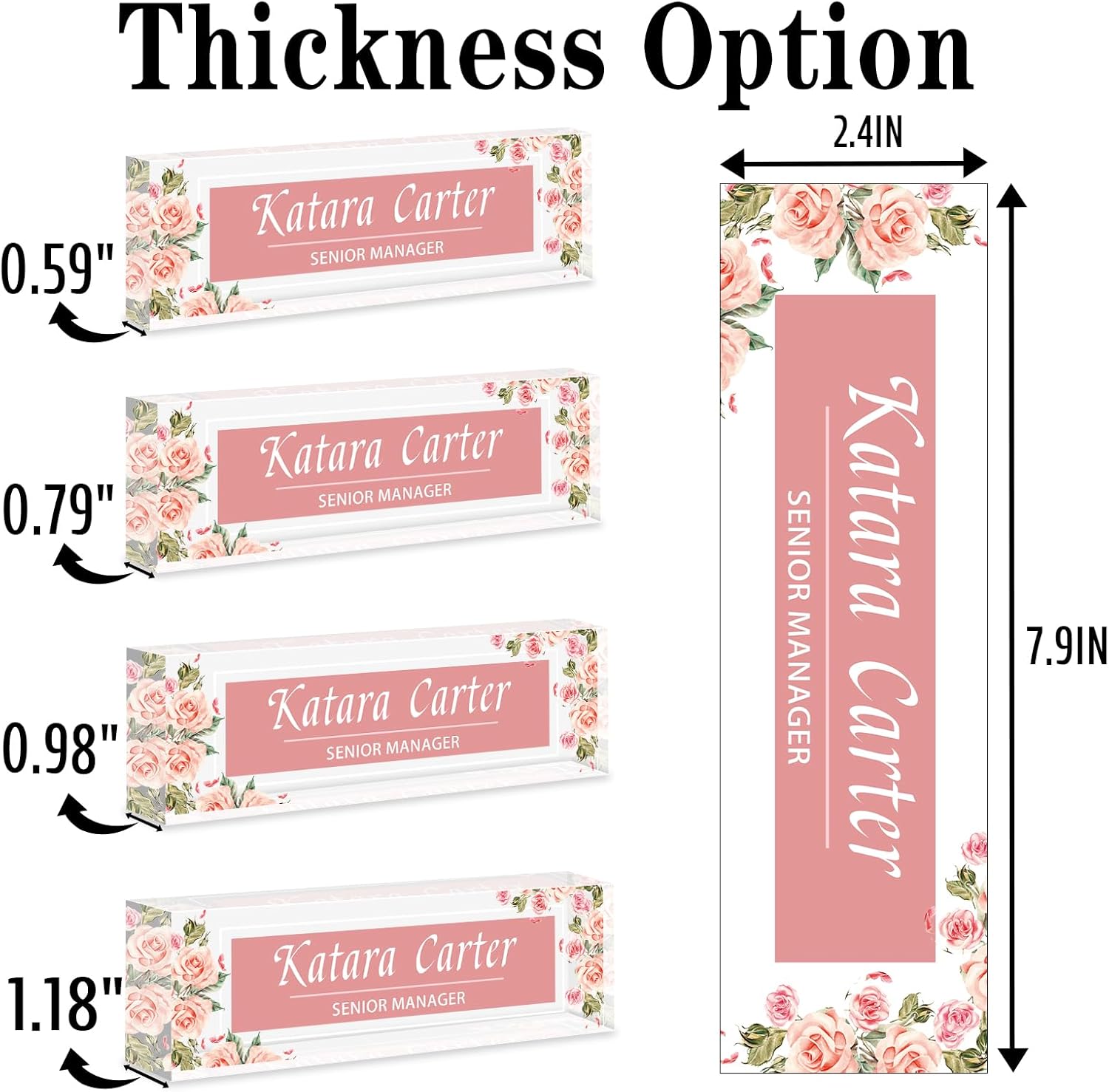 Name Plate for Desk Personalized, Acrylic Desk Decorations, Employee Appreciation Gifts, Custom Office Gifts for Coworkers, Boss, Teacher, Nurse (Rose)