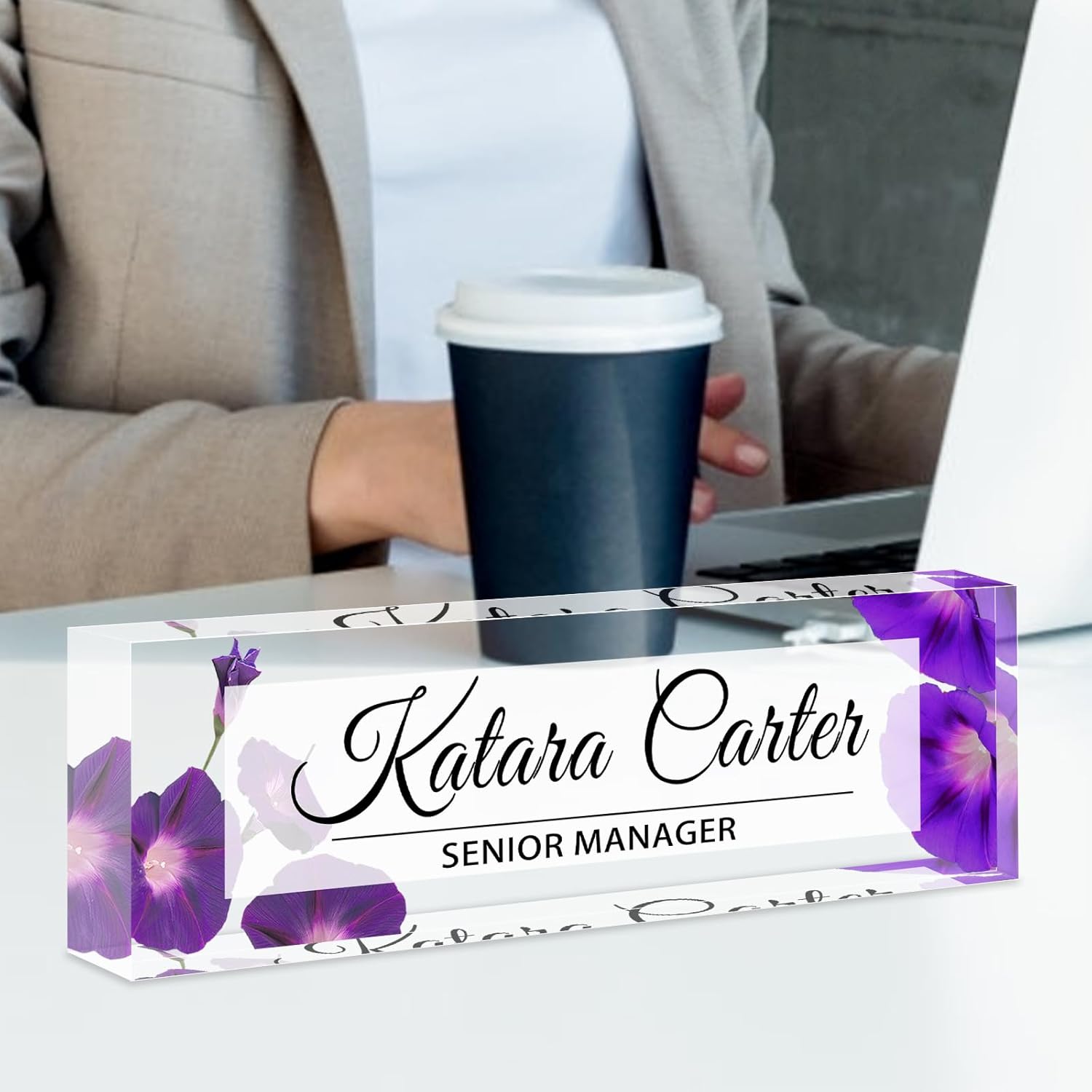 Name Plate for Desk Personalized, Acrylic Desk Decorations, Employee Appreciation Gifts, Custom Office Gifts for Coworkers, Boss, Teacher, Nurse (Morning Glory)