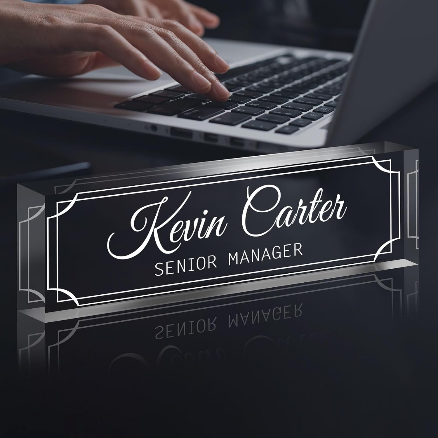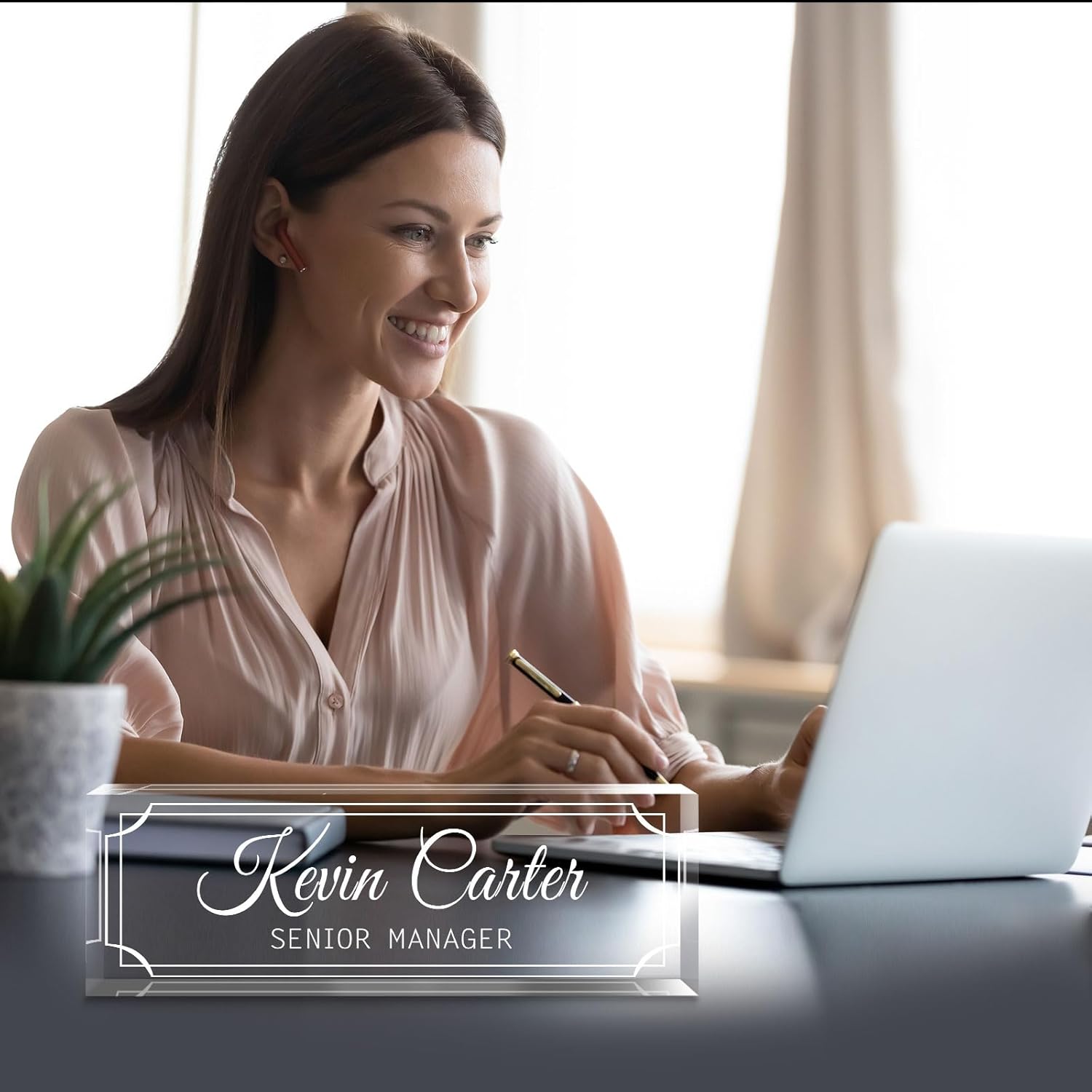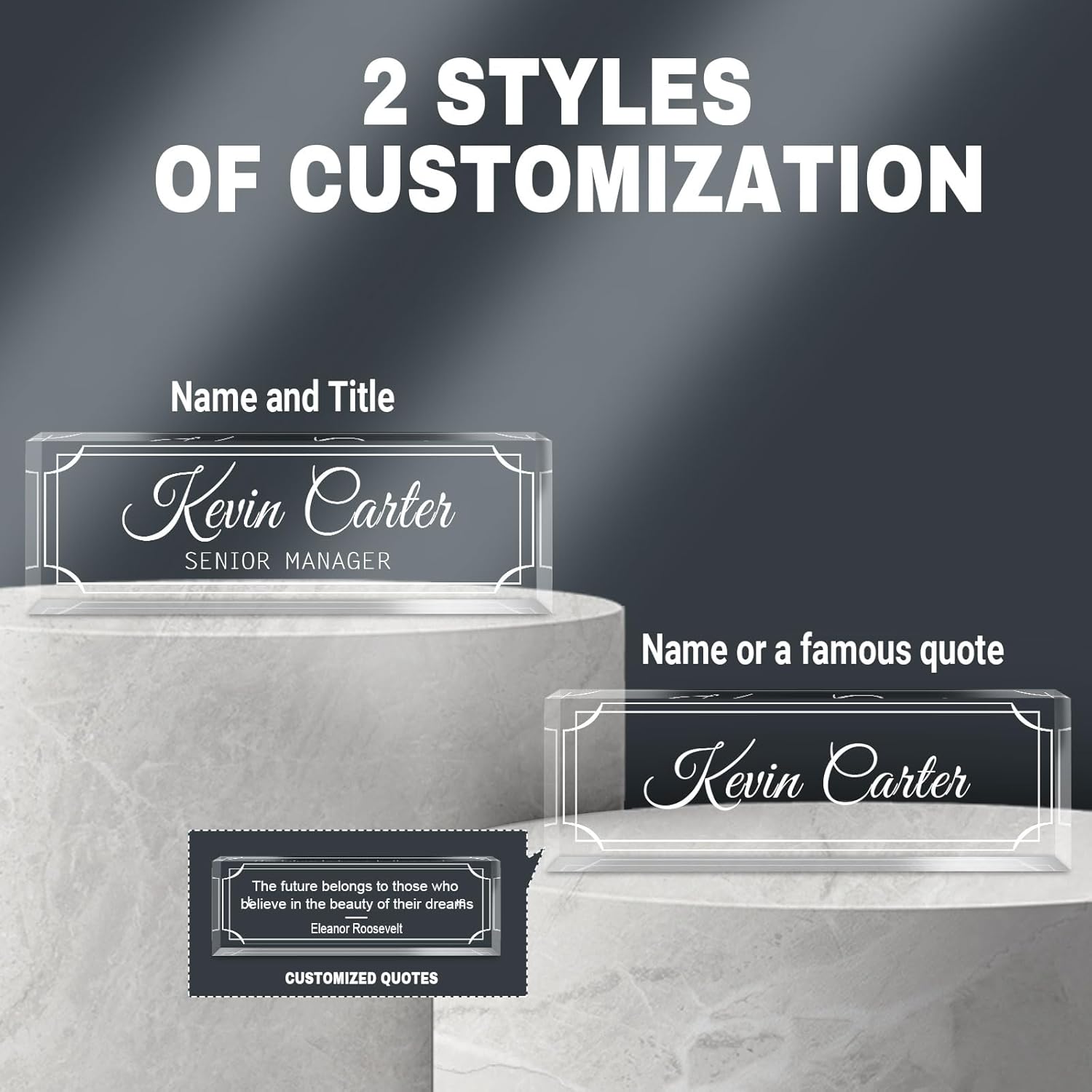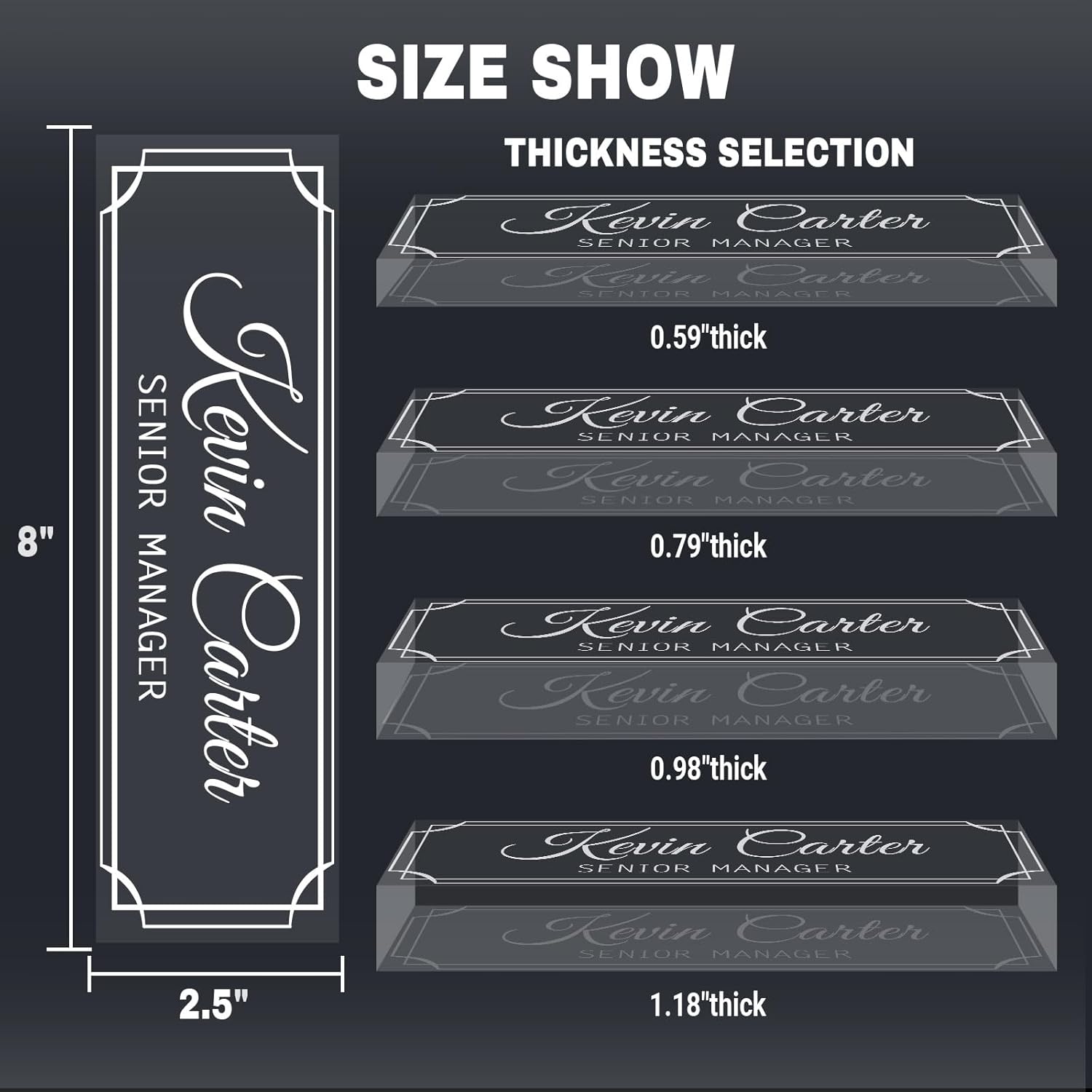 - 【Personalized Appreciation Gifts】Whether it's a holiday, birthday, or work anniversary, there's no better way to show your appreciation than by DIY-ing a unique name plate for your coworkers. And what better option than our premium acrylic glass block name plate? It's guaranteed to leave a lasting impression and let your colleagues know just how much you value them.